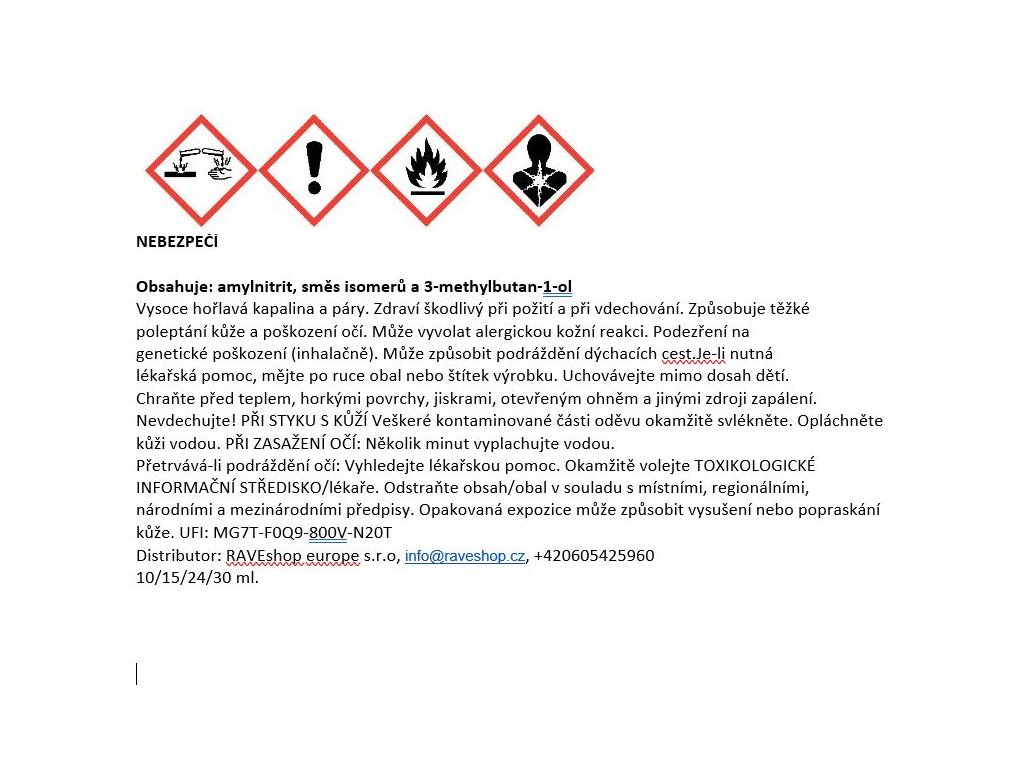 - das Produkt enthält 10 ml: Amylnitrit / CAS 110-46-3