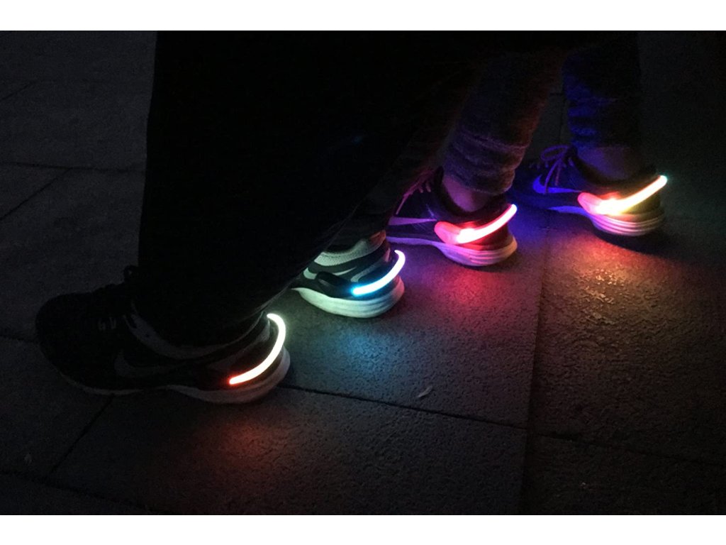 Wasserdichter LED-Clip für Schuhe oder Hand. Reflektierender Schuhclip mit LED-Beleuchtung (Dauer- und Blinklicht), die Ihren Schuh belebt. Sie können es auch als Armband an Ihrer Hand verwenden.