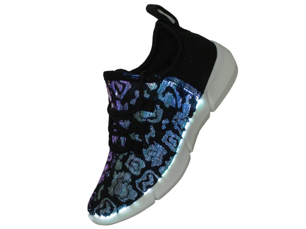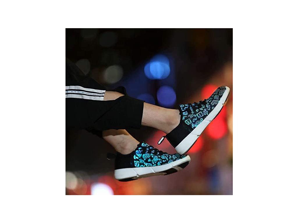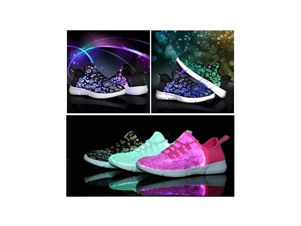 Leuchtende Schuhe, die Aufmerksamkeit erregen. Sie können aus bis zu sieben Lichtmodi wählen.