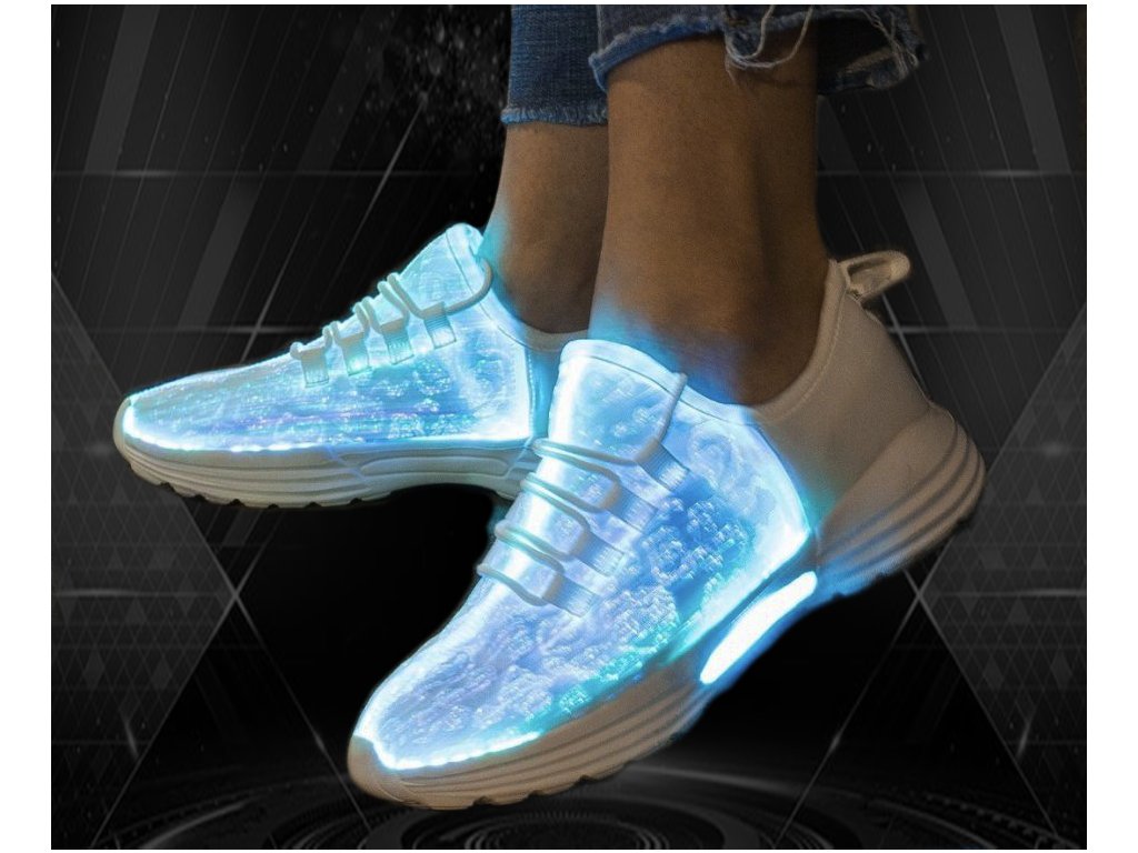 Leuchtende Schuhe, die Aufmerksamkeit erregen. Sie können aus bis zu sieben Lichtmodi wählen.