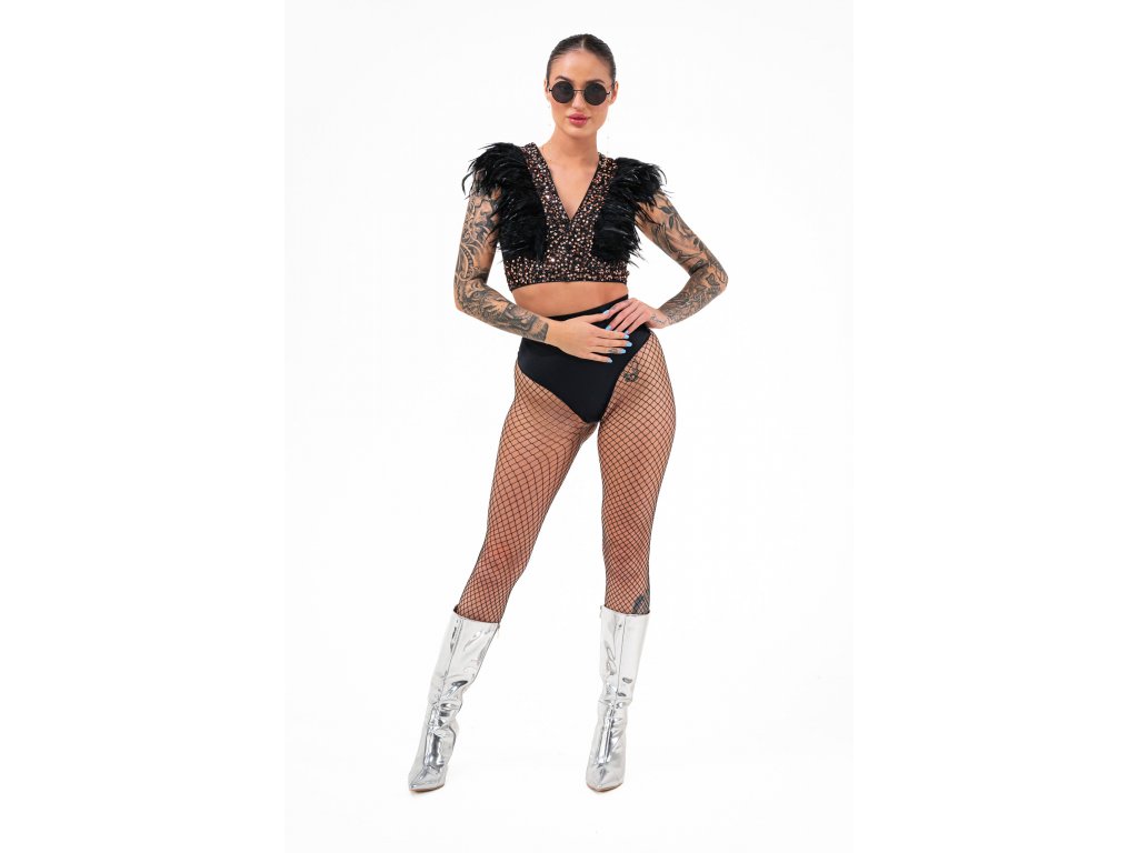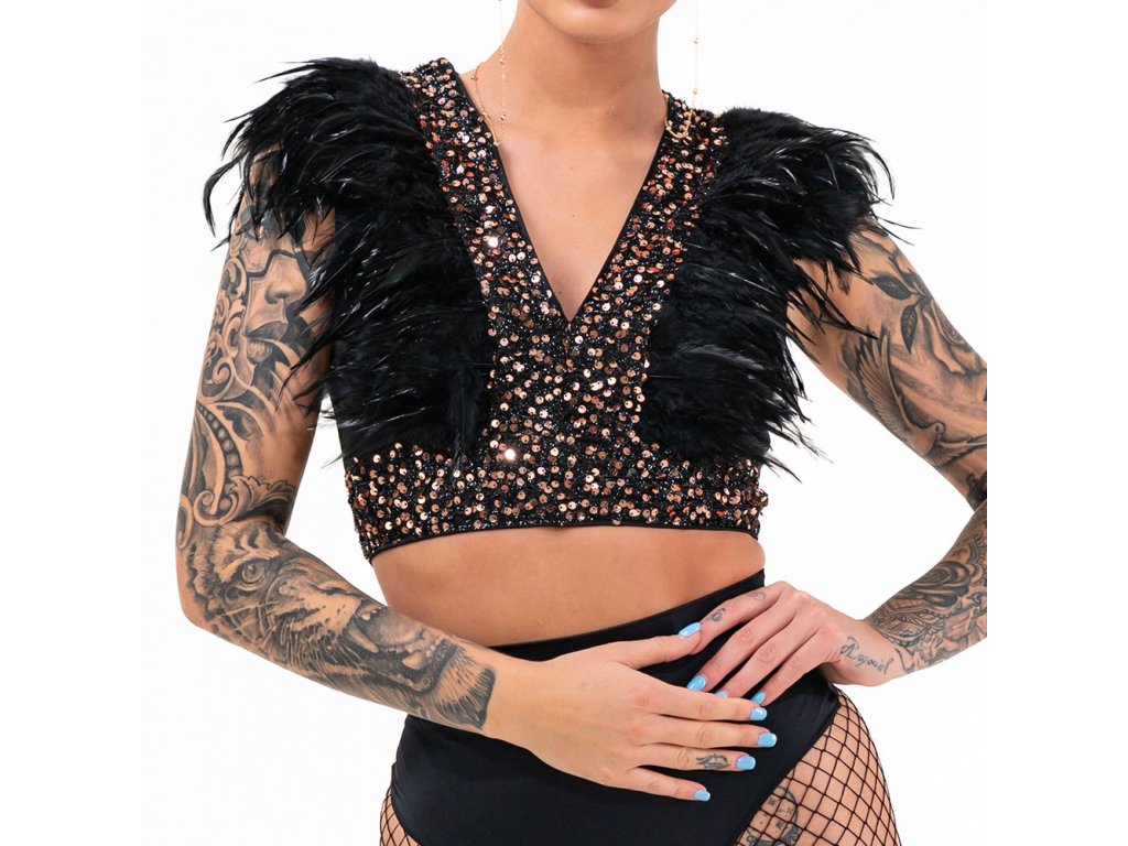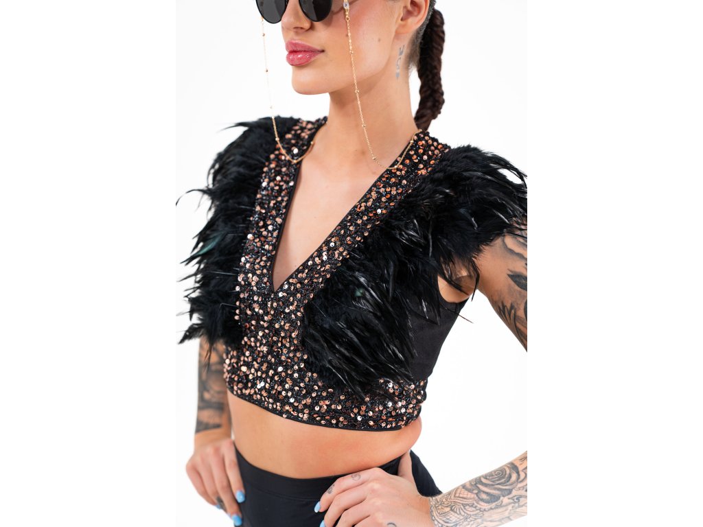 Paillettenoberteil mit Federn