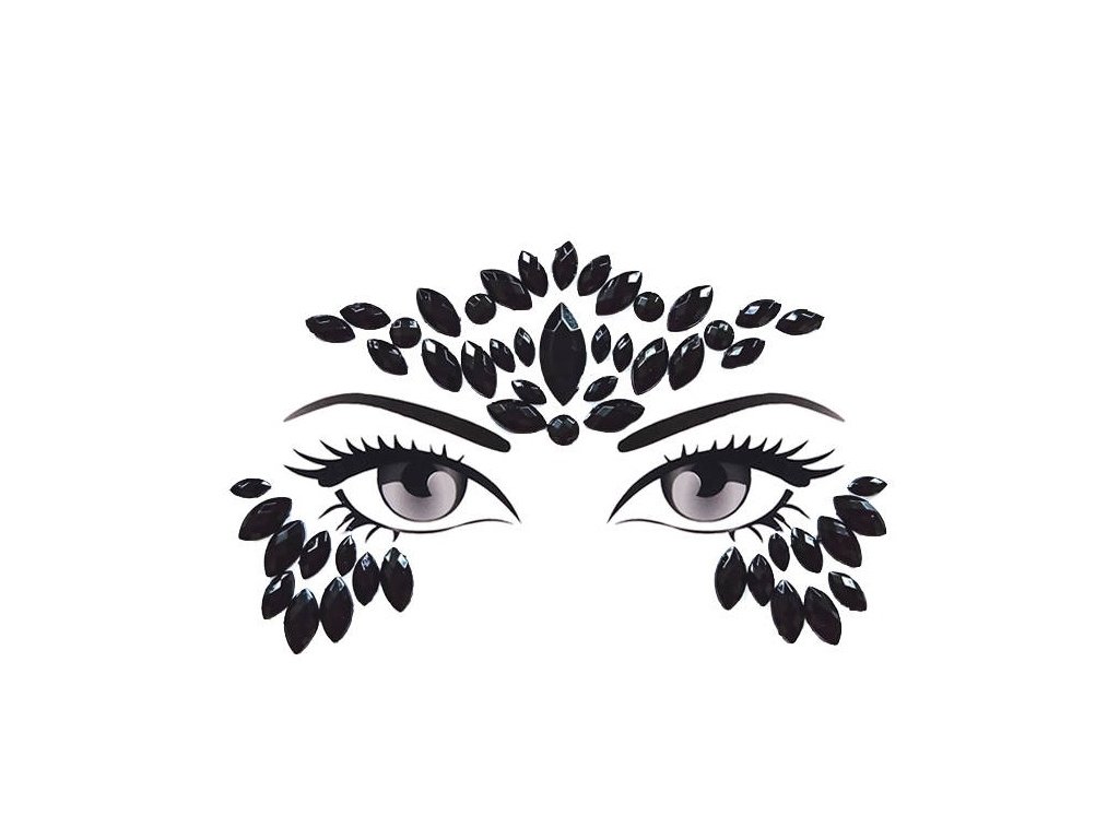 Gesichts- und Körpersteine, die das perfekte Accessoire für jede Party oder jedes Festival sind. Alle Klebesteine sind auf ein Blatt der Basisfolie geklebt, von der Sie sie nur noch entfernen und auf Gesicht oder Körper kleben müssen.