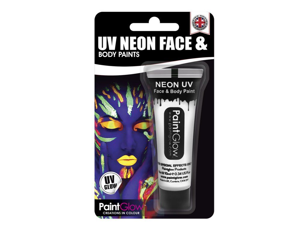 Unsere superhellen UV-Neon-Körperfarben sind in 8 Farben erhältlich, die im Gegensatz zu anderen Produkten auf dem Markt einen hohen Anteil an UV-Pigmenten enthalten. Unsere leuchtenden Pigmente zeigen extrem intensive leuchtende Neonfarben. Dieses Produkt wird häufig bei Festivals, Clubs, Partys, Halloween-Feiern, Konzerten, Theateraufführungen und auch für professionelle Maskenbildner verwendet.