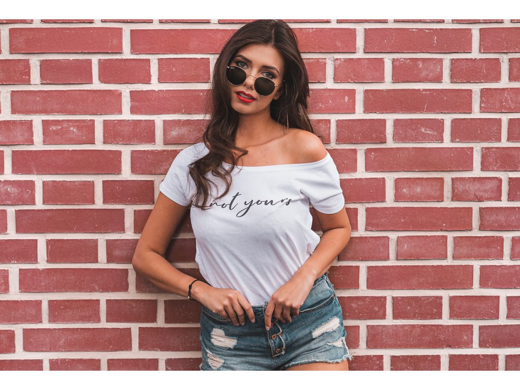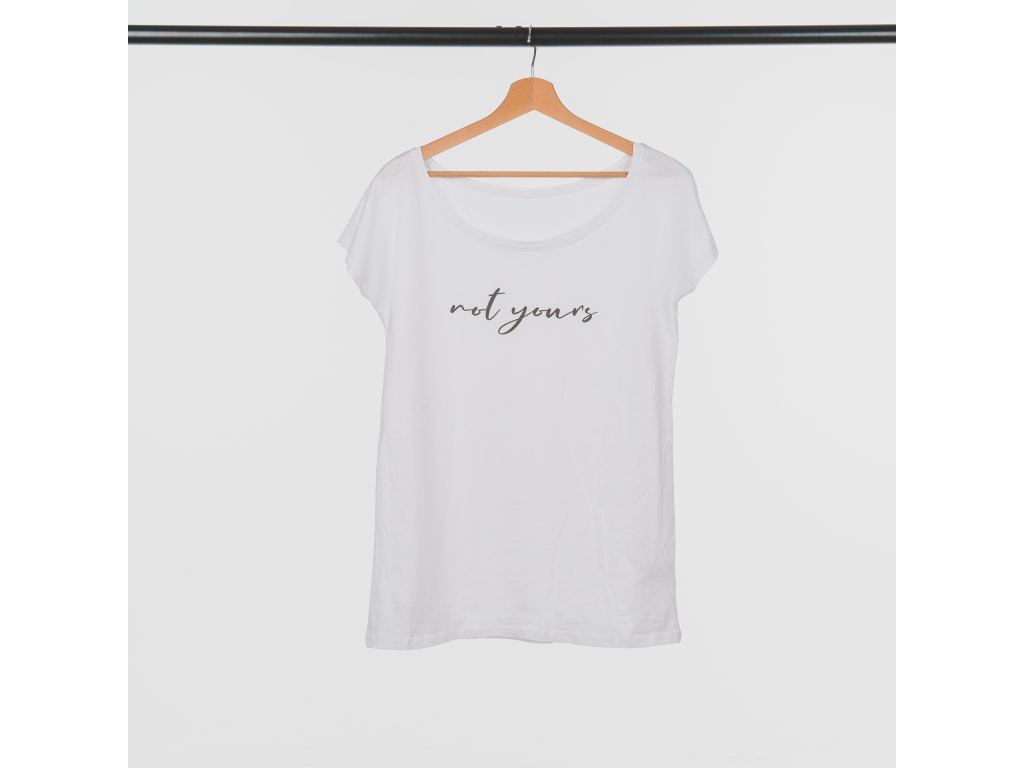 Das weiße T-Shirt mit dem NOT YOURS Design spricht buchstäblich für sich.